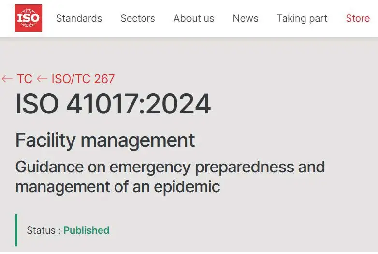由我國(guó)牽頭制定的ISO 41017:2024 Facility management — Guidance on emergency preparedness and management of an epidemic 《設(shè)施管理 疫情應(yīng)急準(zhǔn)備與...