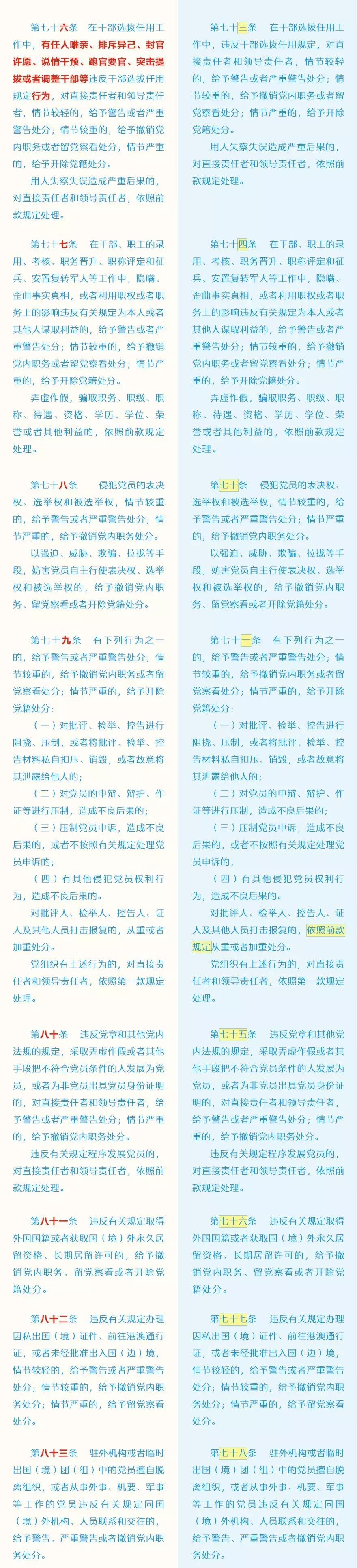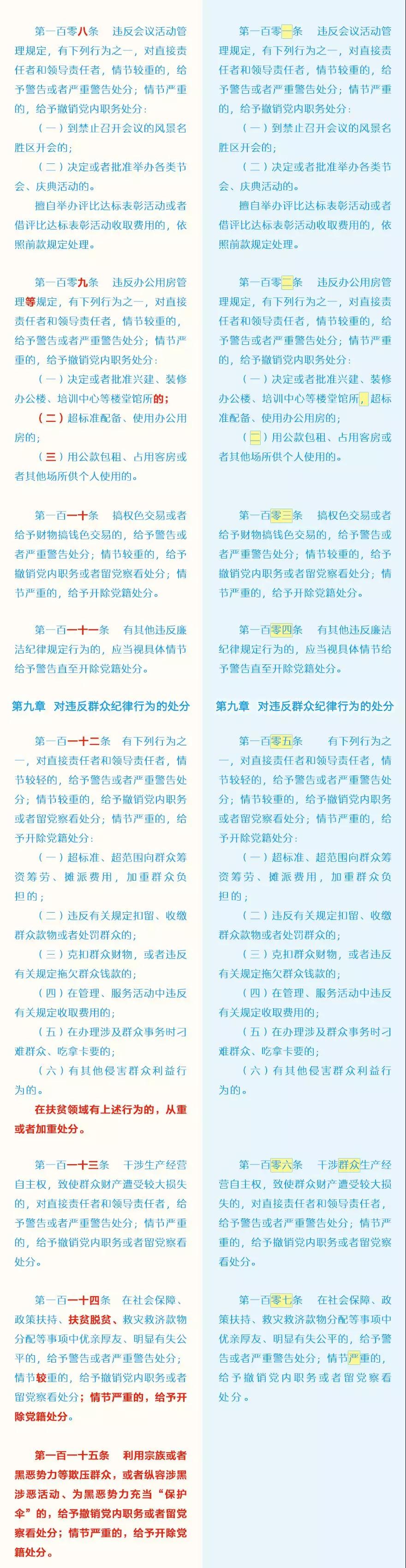 此次修訂的主要內(nèi)容包括哪些?這些變化背后體現(xiàn)了怎樣的理念?集團(tuán)紀(jì)委引用了中央紀(jì)委國家監(jiān)委網(wǎng)站的“《中國共產(chǎn)黨紀(jì)律處分條例》修訂前后最全對(duì)照表”,幫助大家讀懂新修訂的黨紀(jì)處分條例。